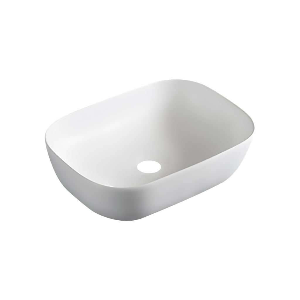 The BYRON Bench Mount Basin in Matte White brings a coastal vibe to the space. Its relaxed, soft curves will flow seamlessly into any modern bathroom design. Complete your BYRON Basin look choosing from Highgrove Bathrooms’ extensive range of tapware and basin wastes. The BYRON Bench Mount Basin is also available in Gloss White and Matte Black finishes. Due to our policy of continuous development, all basin designs and measurements are intended only as a guide and are subject to change without notice. We highly recommend having the basin on site before commencing rough in or any stone top cutting.