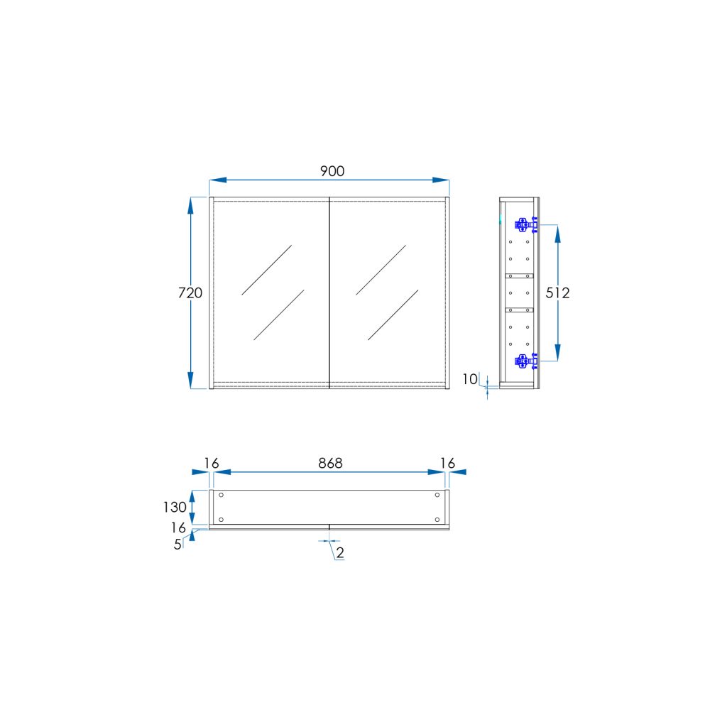 Material: Moisture Resistant White 2 Pac cabinet with Mirrored Front