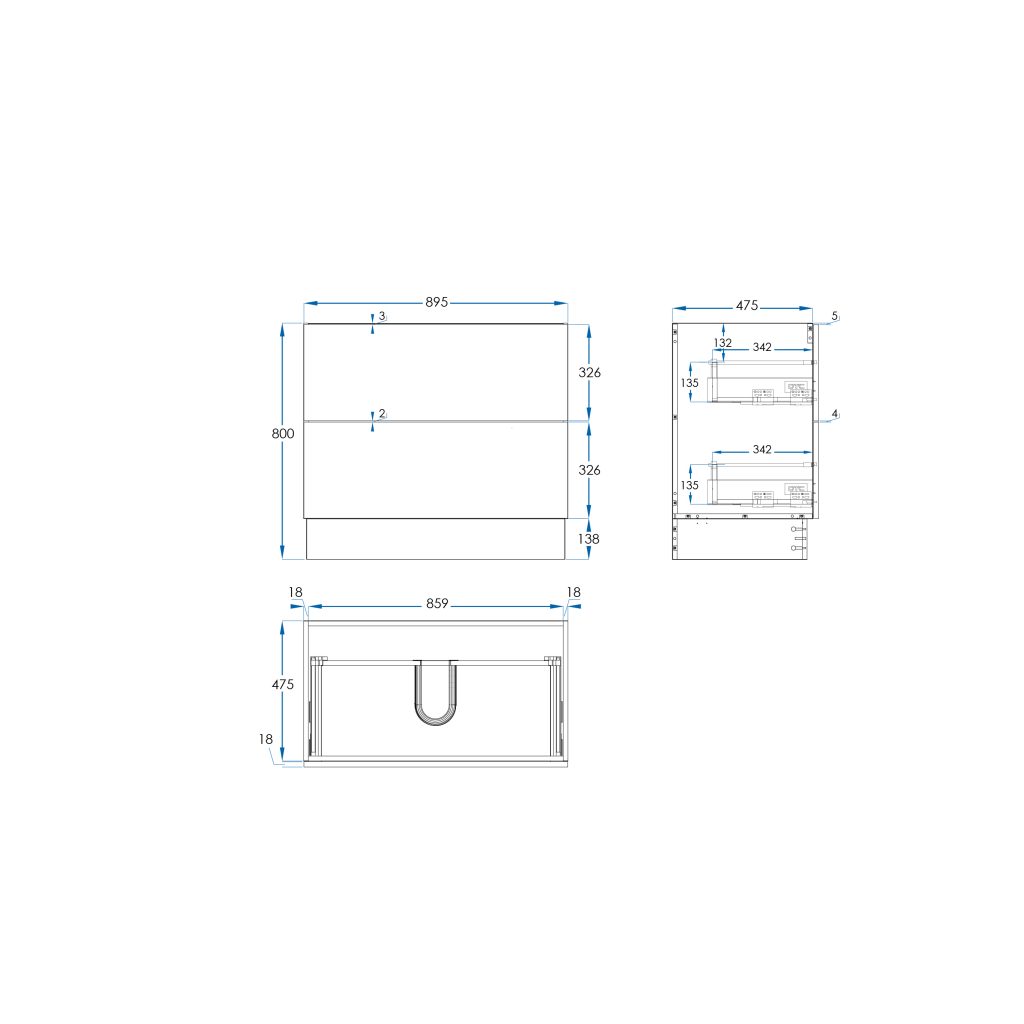 Material: Moisture Resistant Timber Laminate with Soft Close Drawers and Metal Drawer Runners