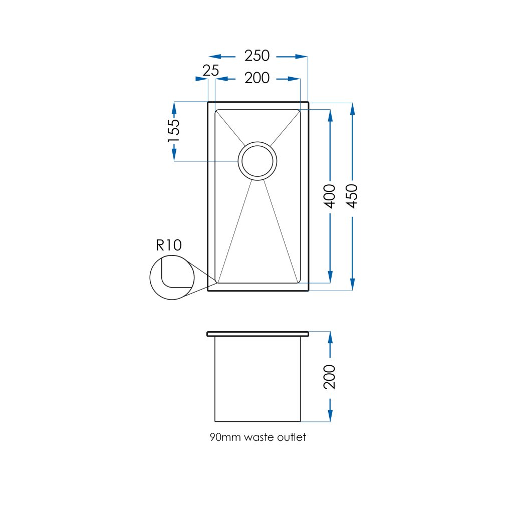 For a sink with as much to give as the Burazzo, considerable thought has gone into the design. The Burazzo design is square with a tight and clean 10mm corner radius, plus a slightly deeper bowl of 200mm makes for a practical design with absolutely no compromise on elegance. The sink wastes are located at the back on all single bowl models giving the customer a superior look and more room in underneath cupboard space.